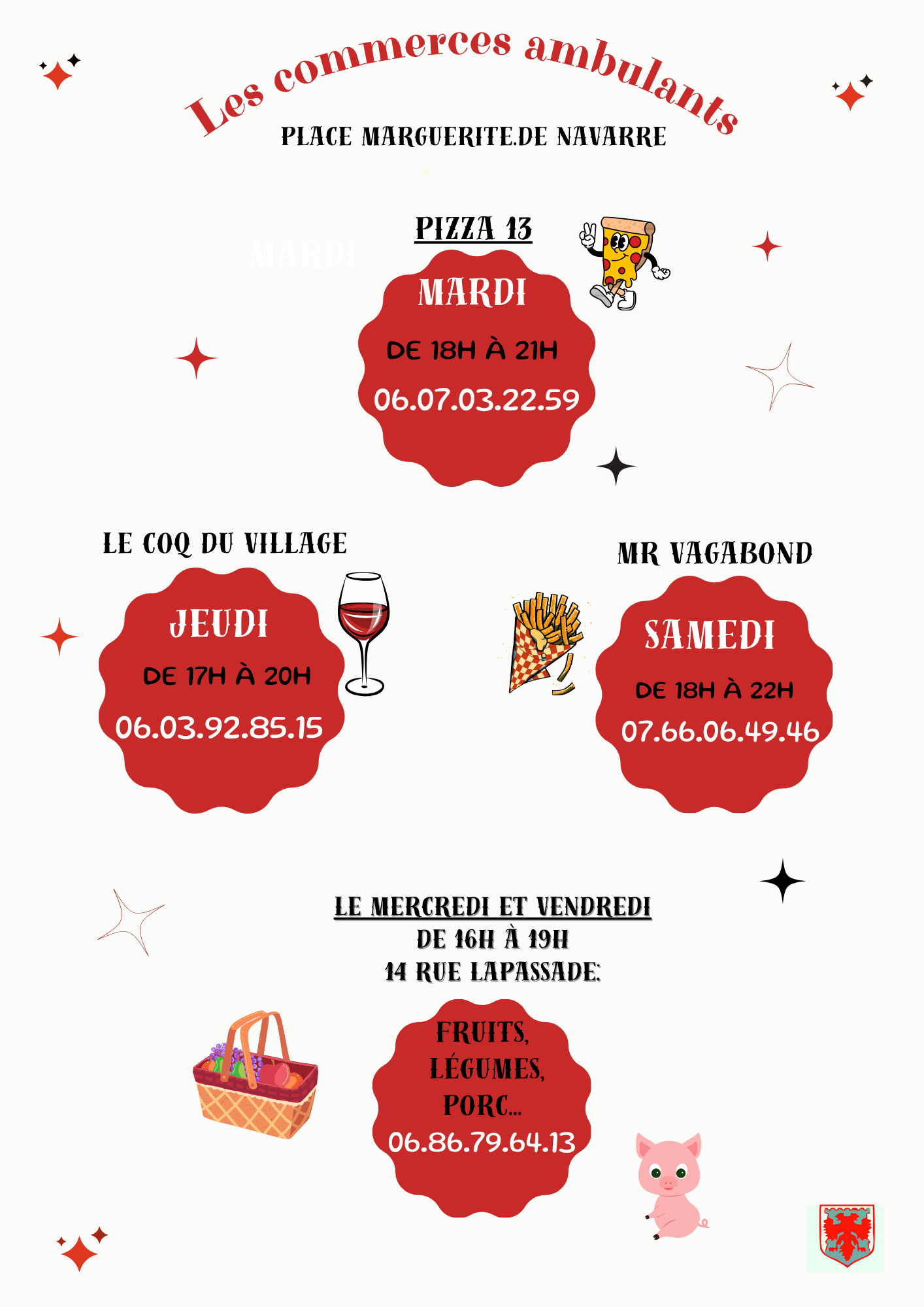 Les foodtrucks s'installent sur la place Marguerite de Navarre devant la Mairie et L'agence postale communale.