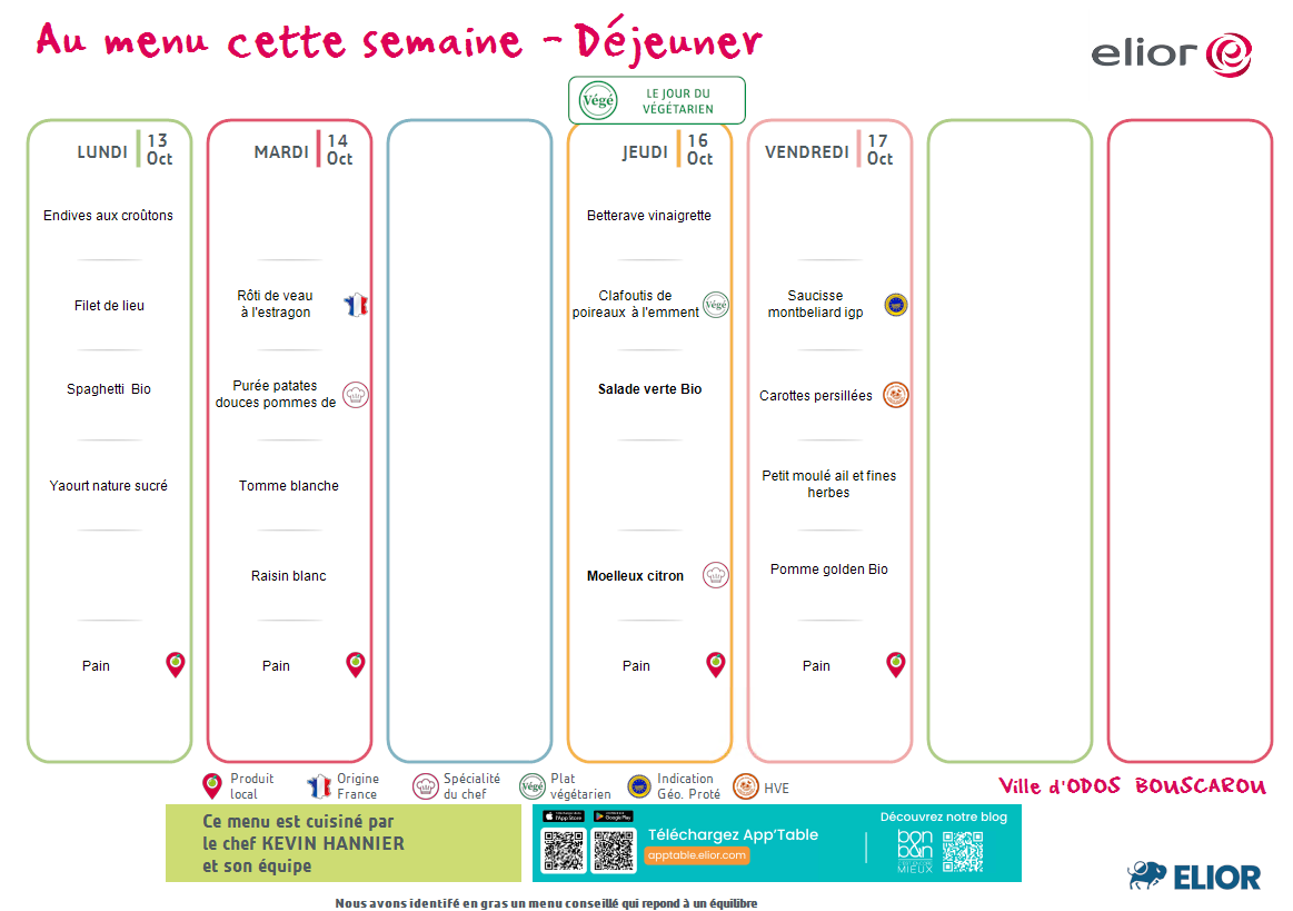 Menu du 13 au 17 octobre